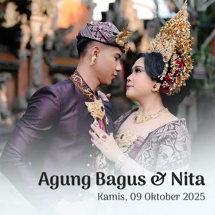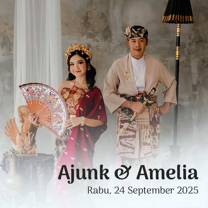 PAWIWAHAN Ajunk & Amelia Perkenalkan Kami Yang Berbahagia, Putra Dan Putri Kebanggaan Dari Dua Keluarga Yang Akan Menjadi Satu. I GUSTI AGUNG ARIMBAWA Putra Ketiga dari pasanganI GUSTI MADE PUTRA & NI KETUT TUNINGSIH BR. DINAS SANGKANAJI , DESA KERTHA BUANA, KEC. SIDEMEN – KARANGASEM & I GUSTI AYU NOVA AMELIA Putri Pertama dari pasanganI […]