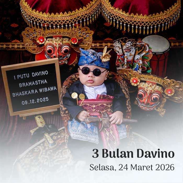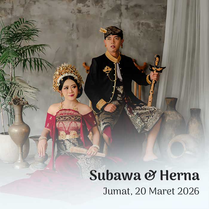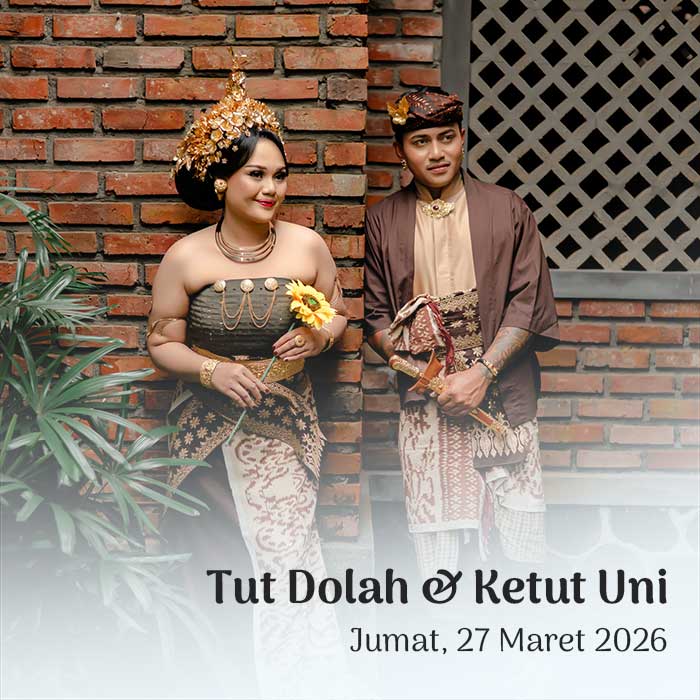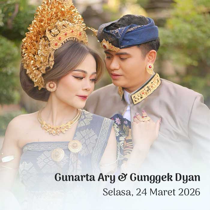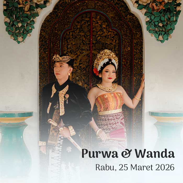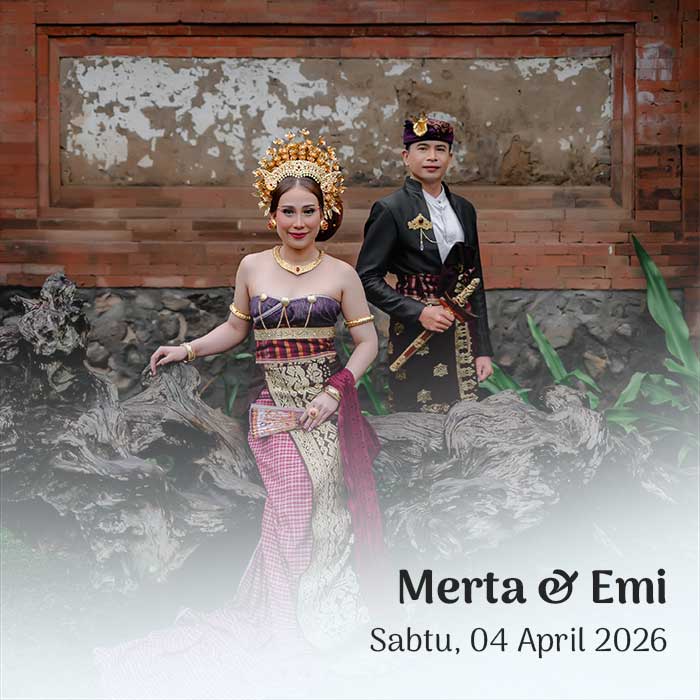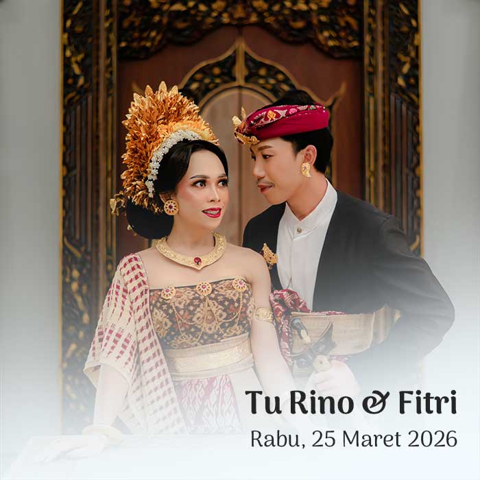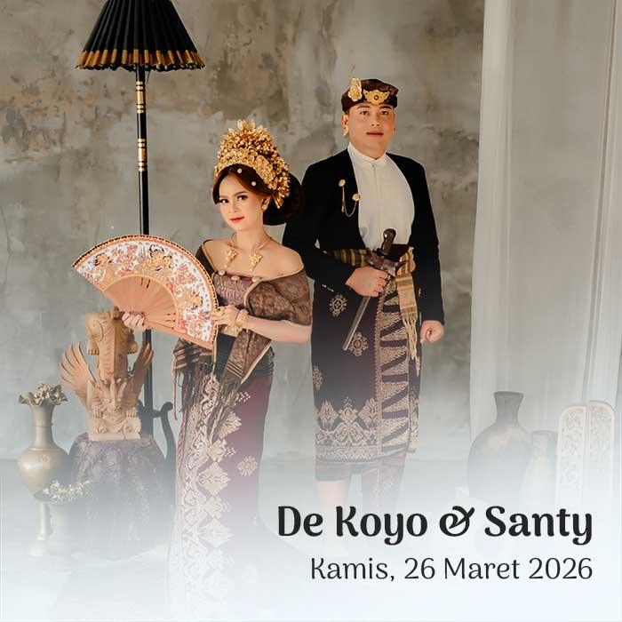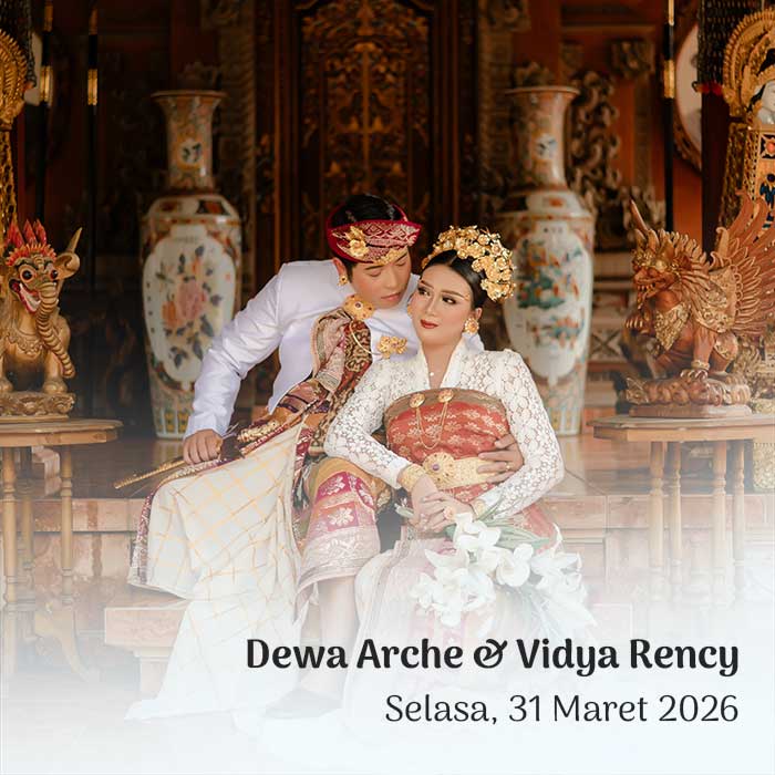 Hendra & Ayu Sintya 23 Maret 2026 Wahai pasangan suami-istri, semoga kalian tetap bersatu dan tidak pernah terpisahkan. Semoga kalian mencapai hidup penuh kebahagiaan, tinggal di rumah yang penuh kegembiraan bersama seluruh keturunanmu. (Rg Veda X.85.42) Menuju Hari Bahagia Menuju Hari Bahagia Hari Jam Menit Detik Saat Bahagia Save the Date Perkenalkan Kami Yang Berbahagia, […]
