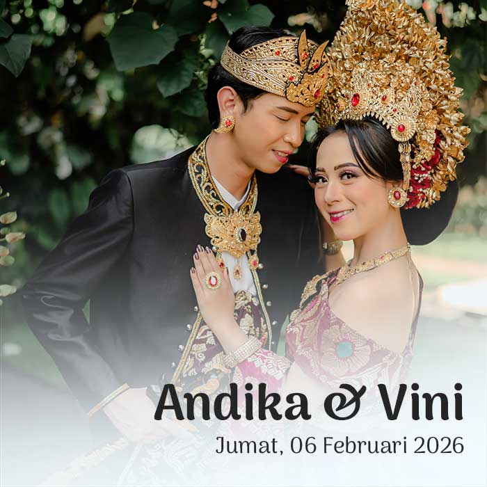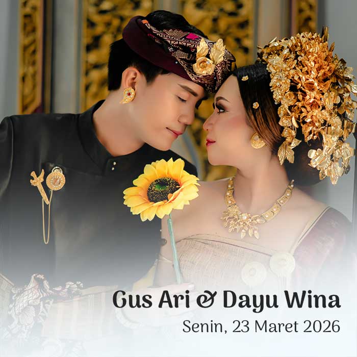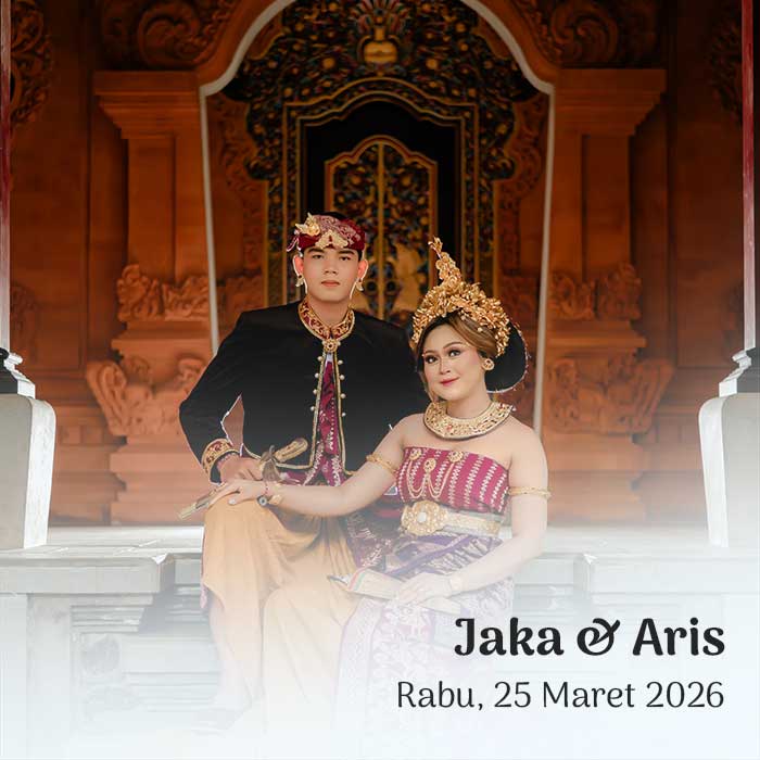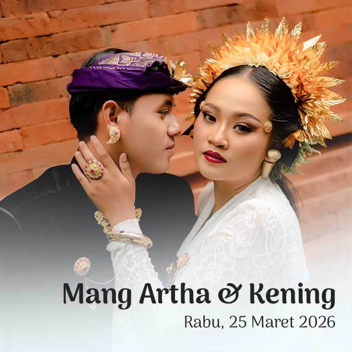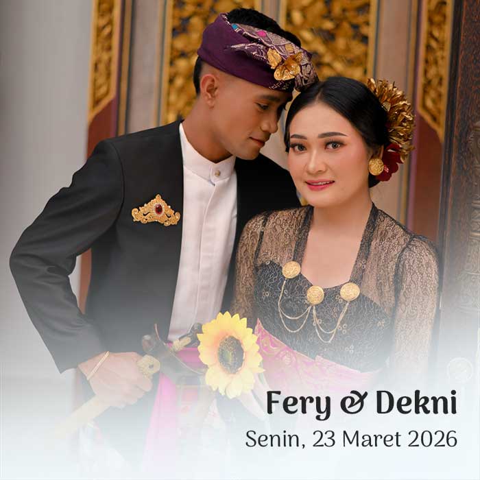 PAWIWAHAN Fery & Dekni Senin, 23 Maret 2026 Pawiwahan Fery & Dekni Dear, Tamu Undangan Open Invitation Om Swastyastu Atas Asung Kertha Wara Nugraha Ida Sang Hyang Widhi Wasa/Tuhan Yang Maha Esa kami bermaksud mengundang Bapak/Ibu/Saudara/i pada Upacara Manusa Yadnya Pawiwahan (Pernikahan) Putra dan Putri kami I Kadek Ferianto, S.A.P. Putra Kedua dari pasangan I […]